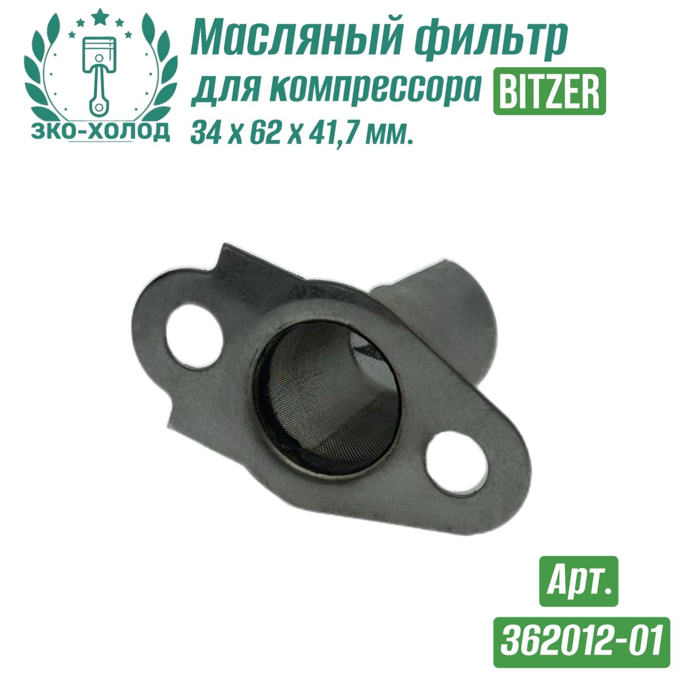 ЗАВОД КОМПРЕССОРНОГО ОБОРУДОВАНИЯ предлагает запчасти к холодильному компрессору Bitzer (Битцер). Фильтр масляный Bitzer (362012-01) Размеры масляного фильтра: 34 х 62 х 41,7 мм. Код Bitzer: 362012-01; Внутренний №: 20.12.025; Совместимость с компрессорами Bitzer: 2DC.
