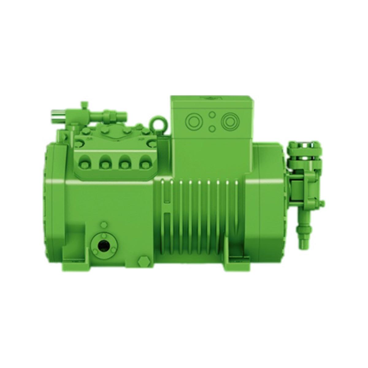 Технические данные: Рабочий объём (1450 об/мин, 50 Гц): 101,8 м³/ч; Рабочий объём (1750 об/мин, 60 Гц): 121,3 м³/ч; Количество цилиндров x диаметр x ход поршня: 4 x 82 мм x 55 мм; Вес: 204 кг.; Макс. давление (LP/HP): 19 / 32 бар; Тип масла: R134a/R407C/R404A/R507A/R407A/R407F: BSE32 (стандартный) | R134a при температуре выше 70 °C: BSE55 (опция); Масло типа R1234yf: BSE32 (стандартный) | R1234yf при температуре выше 70 °C: BSE55 (опция); Масло типа R1234ze: BSE55 (стандартный) | при температуре выше 15 °C: BSE85K (опция) | при температуре выше 70 °C: BSE85K (опция); Масло типа R454C/R455A: BSE32 (стандартный). Данные двигателя: Версия двигателя: 3; Напряжение двигателя (подробнее по запросу): 380–420 В, ПВ-3, 50 Гц; Максимальный рабочий ток: 32.1 А; Максимальный рабочий ток: 70 Гц/400 В/FI: 46,6 А; Коэф. намотки: 50/50; Пусковой ток (при заблокированном роторе): 125,0 А Y / 211,0 А YY; Максимальная потребляемая мощность: 19,0 кВт; Защита двигателя: SE-B3 (опция), SE-B2 (опция), CM-RC-02 (стандарт); Запорный клапан: Стандартный; Всасывающий запорный клапан: Стандартный; Масляный нагреватель: 140 Вт (опция); Контроль давления масла: MP54 (опция); Уровень звуковой мощности (-10 °C / 45 °C): 79,0 дБ(А) при 50 Гц; Уровень звукового давления на расстоянии 1 м (-10 °C / 45 °C): 71 дБ(А) при 50 Гц.
