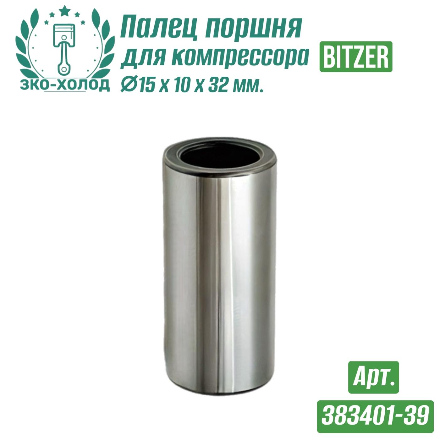 ЗАВОД КОМПРЕССОРНОГО ОБОРУДОВАНИЯ предлагает запчасти к холодильному компрессору Bitzer (Битцер). Палец поршня (383401-39) Bitzer Размеры пальца: Ø15 х Ø10 х 32 мм. Код Bitzer: 383401-39; Внутренний №: 20.01.009; Совместимость с компрессорами Bitzer: 2GC; 2GES; 4FC; 4FES. Палец организует подвижную связь, посредством которой поступательные колебания поршня через шатун становятся вращательным движением коленвала.