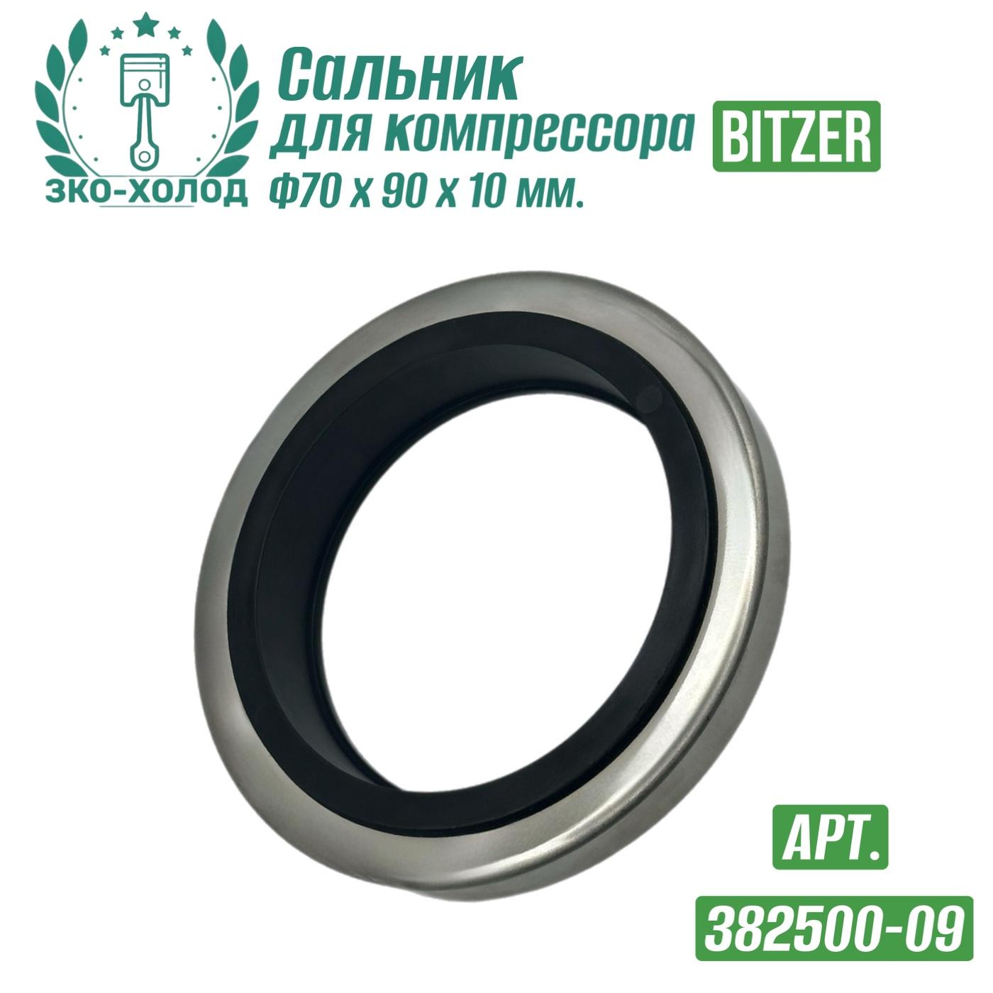 ЗАВОД КОМПРЕССОРНОГО ОБОРУДОВАНИЯ предлагает запчасти к холодильному компрессору Bitzer (Битцер). Сальник Bitzer (382500-09) Внутренний диаметр: 70 мм; Внешний диаметр: 90 мм; Высота - 10 мм; Код Bitzer: 382500-09; Внутренний №: 20.09.031; Совместимость с компрессорами Bitzer: HSK7451-50; HSK7451-70; HSK7461-60; HSK7461-80; HSK7471-70; HSK7471-90; HSN7451-60; HSN7461-70; HSN7471-75; HSNP7451-60; HSNP7461-70; HSNP7471-75. Сальник обеспечивает герметичность системы при вращении вала. Его основная задача: предотвращать утечки хладагента и масла из корпуса компрессора.