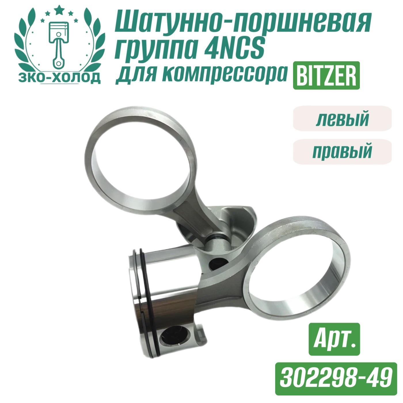 ЗАВОД КОМПРЕССОРНОГО ОБОРУДОВАНИЯ предлагает запчасти к холодильному компрессору Bitzer (Битцер). Шатунно-поршневая группа 4NCS левый+правый (302298-49) 70 мм. Комплектация: Шатун (13102) - 2 шт. Палец поршня (40145) - 2 шт. Кольцо поршневое (30055/31022) Комплект - 2 шт. Стопорное кольцо D16 - 4 шт. Поршень левый - 1 шт. Поршень правый - 1 шт. Код Bitzer: 302298-49; Внутренний №: 20.15.055; Совместимость с компрессорами Bitzer: 4NCS-10,2 4NCS-12,2 4NCS-20,2 4NC-10,2 4NC-12,2 4NC-20,2 4NES-12 4NES-14 4NES-20 4NЕ-12 4NЕ-14 4NЕ-20.
